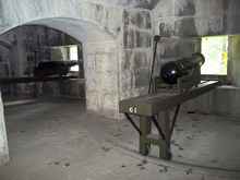 Besides being able to tell more than one interesting story about people who were there, or what each room was or looked like, he also had some funny stories. For many years they did a haunted fort, for Halloween, in the main bakery there are two huge stone ovens with the old iron doors still in place. He said each year this became the witches kitchen, there would be an old hag or two stirring a bubbling cauldron in the fire lit room, at some point while she was talking she would open the oven door and slide a bound figure out, feel him and then slide him back in muttering that he wasn't done yet. This was our host almost every year, he said you can't imagine the things you think of lying in a dark oven lashed to a board!