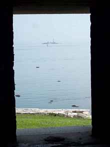 Finally the ranger and his dad got the men with the cannons to fire them; they rolled the cannons down to the gallery and proceeded to arrange their equipment for an inspection and firing. The ranger broke off his story here and said "if you ever get the chance to fire a cannon, DO IT! There is nothing like setting the spark, and feeling the gun jump when you're only a foot or two away." They loaded the cannon and prepared to fire it, as they rolled the first one up to the cannon slit the ranger said he looked out, and there in the old channel was a huge party boat lit up like a Christmas tree. Disco lights, thumping music, and people dancing away. They gave the ranger the honor of firing the first shot, and then proceeded to fire the guns down the line.
