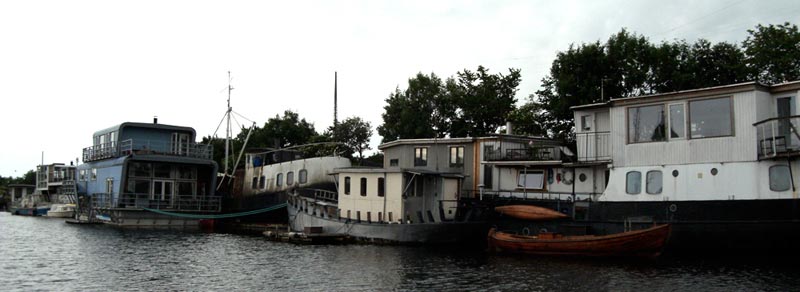| Hundreds of houseboats line the canal banks outside Kobenhaven |