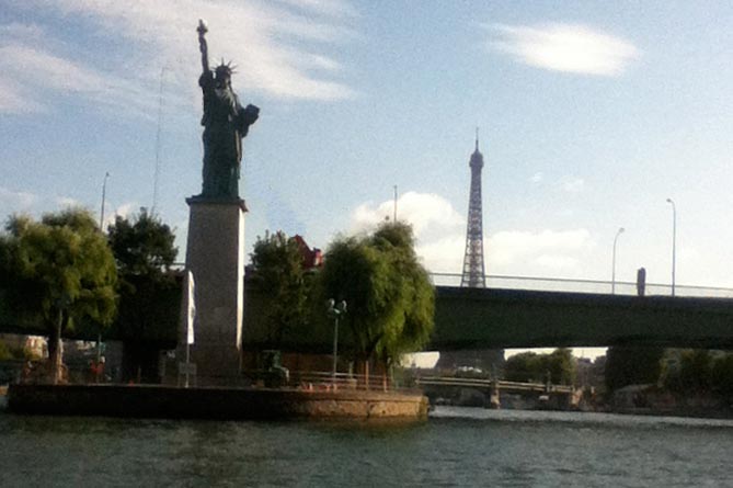Paris has its own Statue of Liberty. The Eiffel Tower in the background |