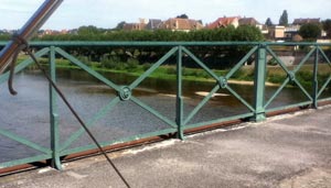 | High above the shallow Loire River The Loire Lateral Canal crosses via an aquaduct |