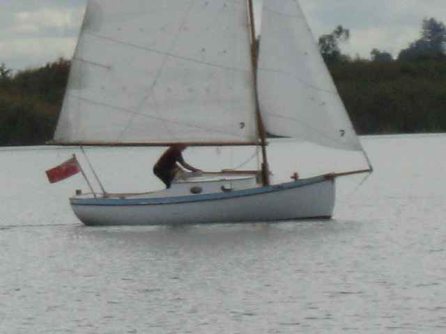 What a blast, the day deserves a story all of its own.  Meeting friends on the beach, sending people out for a row in Offcuts, all five and a half feet of her carrying two people (no one fell out, she is better than you’d expect for such a small boat).  I picked up my friend Nick Miller from the beach and took him out for the under 20 ft class race and, although the much more maneuverable small boats pushed us over the line at the start, we had enough pace upwind and down to overtake most of them. I think we would have been about 4th or 5th out of maybe 30 entrants by the time we had done the race out around the island, up the estuary and back to the start.  Spook is quicker than I thought, not bad for a near replica of an 1860s boat, gaff rigged and not at all sailing at her best yet.  Very satisfying!