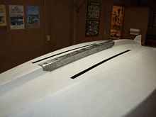 Casting the ballast is the next job to be done. The mold was constructed based upon a pattern made from the skeg area on the boat. This mold was coated with sodium-silicate to protect the wood from the heat of the molten lead. Cutting, shaping and drilling the lead casting was done with wood working tools, as lead is not that much different from dense wood. The slight curvature to conform to the hull shape was accomplished by laying the casting on a temporary shape and working it to shape with a good old fashion sledge hammer.