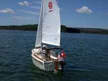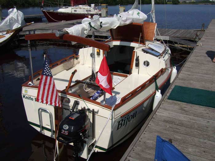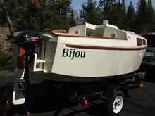 We had her at SailOklahoma 2012 where despite cooler than normal weather we had a few great sails. The greatest thrills that we could have hoped for occurred their when Howard Rice sailed "Bijou" with me for quite a few miles. To have him wring it out and feel that it did sail quite well was certainly a great thrill.