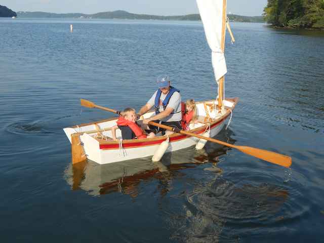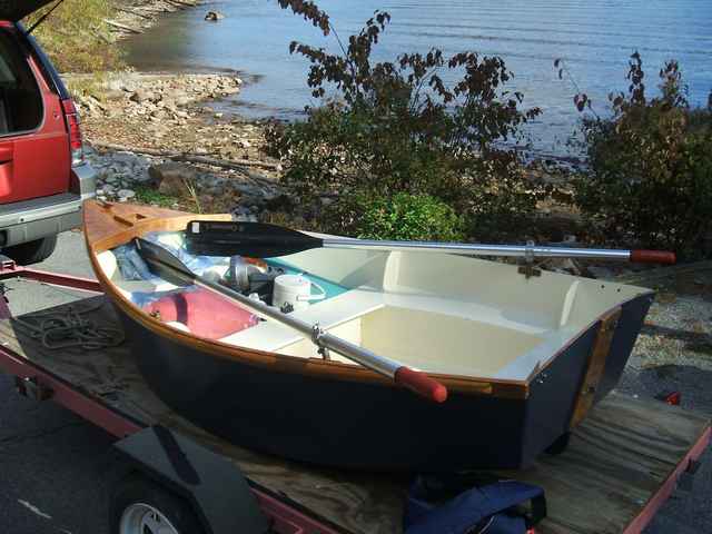 When the spring of this year rolled around, I knew I had to get back to the build. For me, it seemed that “restarting” the project was the hardest part of the whole thing. One afternoon, I just went out to the shed and asked myself what could I pick up to get restarted. I grabbed a can of Helmsman Spar Urethane and slapped a coat of urethane on the rudder and daggerboard. The restart was now underway. Pretty soon I was working on the skeg, sprit, rub rails, fairing and sanding and the refinishing of a pair of oars that a friend had given me.