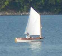 This is the best picture I have of the boat actually under sail. It was taken with a phone camera from some distance.