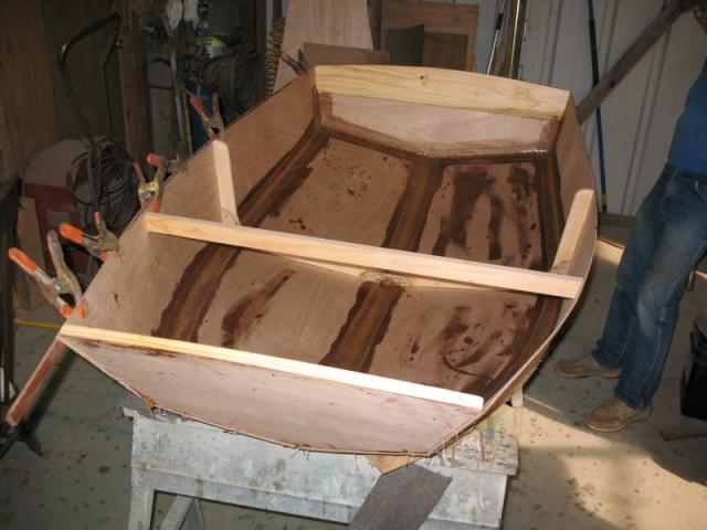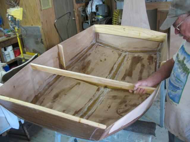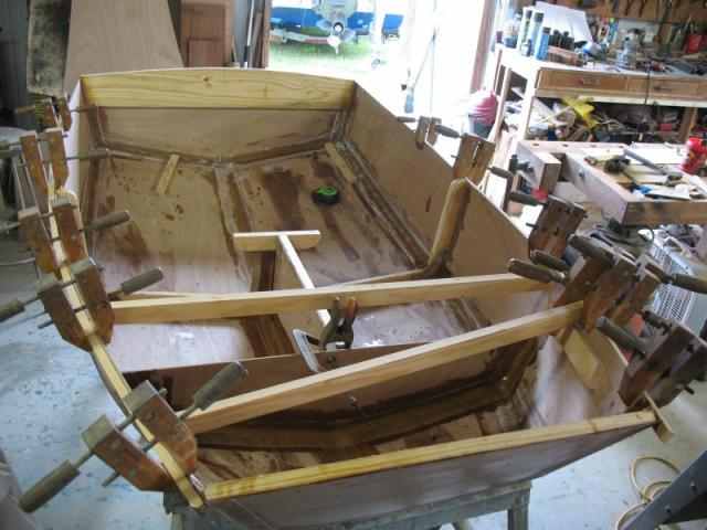 The next goal is to finish the framing for under the rowing seat, layout the seats, and glass the bottom of the after section. Hopefully.