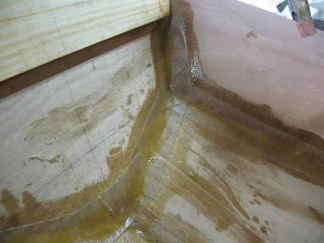 Here I'm using up some excess filleting material on transom corners. I always leave a few small jobs so I can use up excess, or try to anyway.