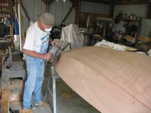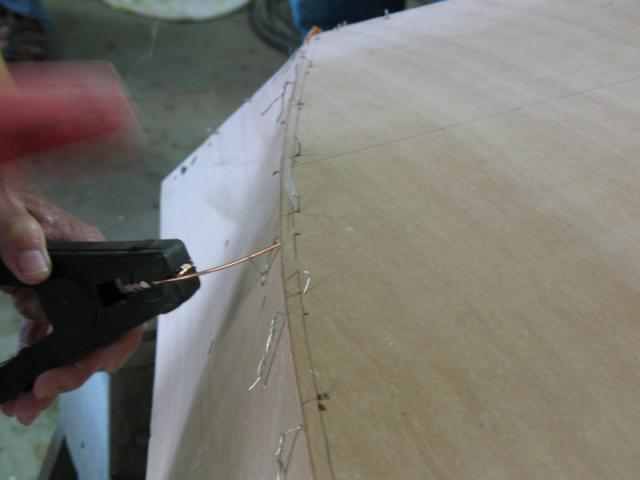Next, the boat gets flipped, all the wires are pulled and the chines get rounded and taped. Probably a short day. The boat is a 6 foot 6 inch MiniPaw dinghy from B and B Yacht designs. The 7th boat I've built from his designs.