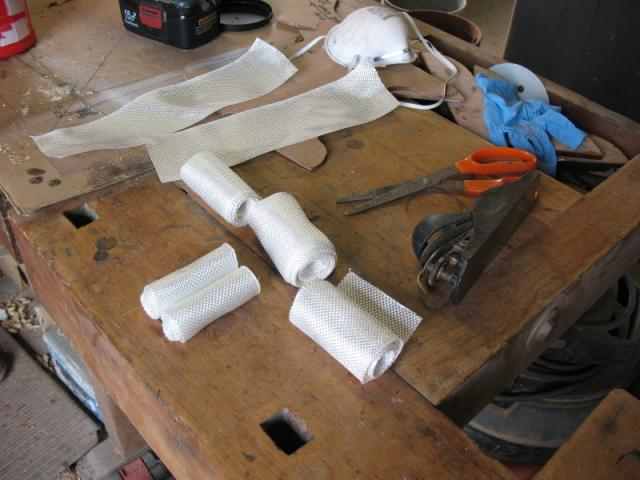 Then you pre-cut the fiberglass tape, roll it up and lay it out in roughly the orientation. It'll go in, so can be just grabbed as needed.