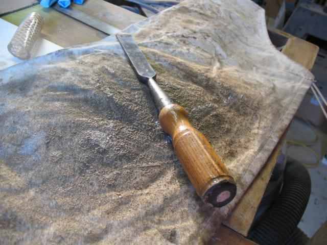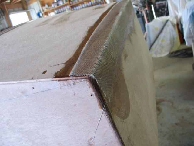 Not a tremendous lot of progress today. Had some company - friends I'd stop working to visit any day. But, the first order of business was to grind the fiberglass tape edges smooth. Nasty, dusty job, so no pictures during the process.