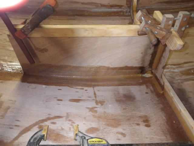 Then we get to play with the epoxy. Filleting and taping the interior seams.