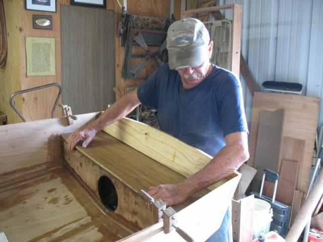 Making the pattern for the forward rowing thwart. This is a modification I made, as it goes all the way forward creating a dry stowage area.