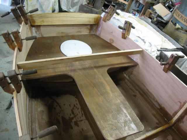 Here's the front thwart in place, with the deck plate laying in it's spot.