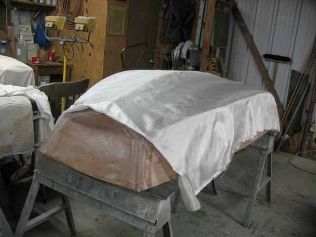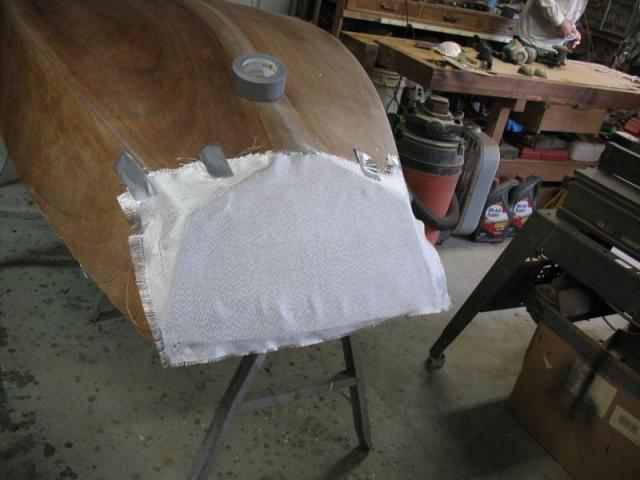 I laid out the glass for the bow, and stern, after feathering the edges of the glass on the bottom and sides.
