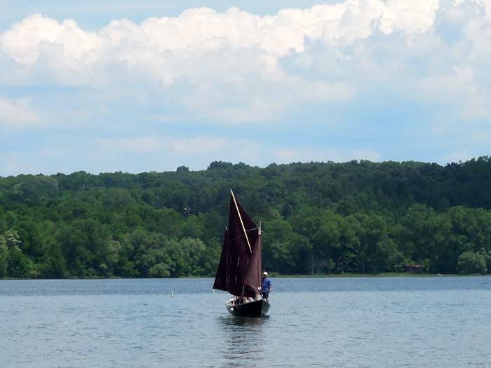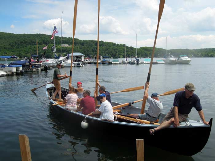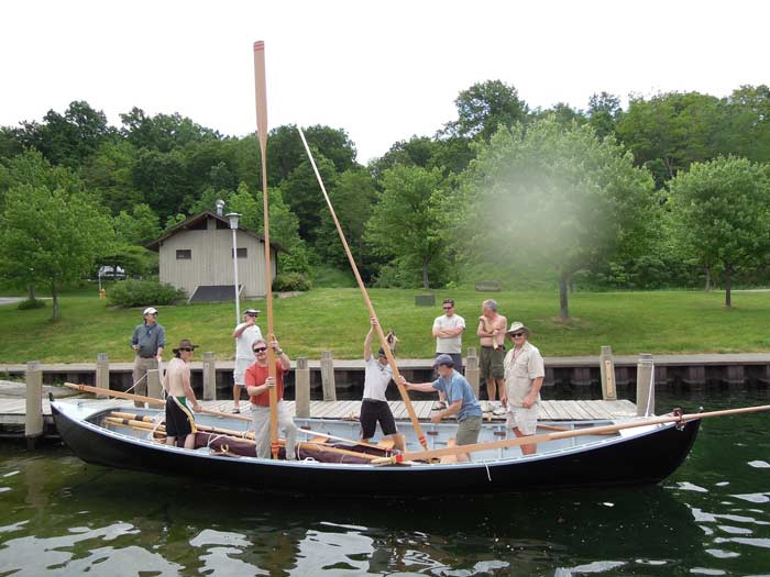 Drawing upon the stamina of some long distance canoe racers for crew, we rowed the boat from Branchport to Hammondsport to join the Wine Country Classic Boat Show in July.