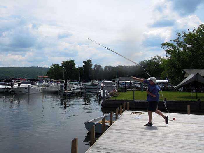 We rigged a target on strings across the harbor and took shots at it with a full sized harpoon (10). It was not an easy hit, there being only three strikes the whole day, and a dispute broke out over the winner..… I suppose I should cede to my son.