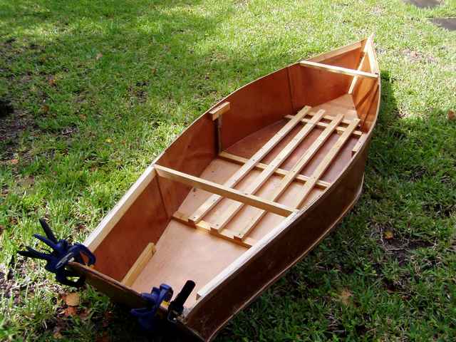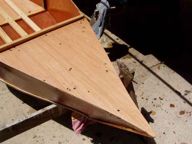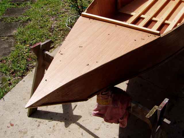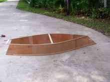 The bottom was of Luan and went on in sections clamped and glued. A skeleton frame was added to straighten and strengthen the sides.