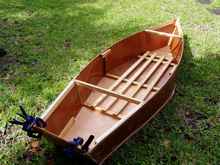 The transom was from a piece of 3/8 plywood. I set the bottom of the transom at 16” running out to 18” at the gunnels with room at the center for a handle.