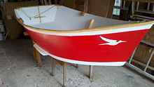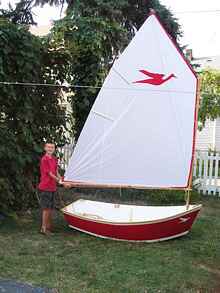 | One day I decided that it was time for the kids to be a bit more independent, and be able to have their own boat for fishing and sailing. I started to search the web for a suitable boat design - not too big for a 10 year old to handle, but not a toy either. The first thing I found was the optimist, but somehow the flat bow did not appeal to me. Soon afterward I landed on Hannu's Boatyard website. There I found the Portuguese style dinghy. I loved the shape of the sheer line, I really liked the rocker on the boat, in general it was a pretty little dinghy I thought would be really nice. In addition, according to Hannu, three sheets of plywood can build two boats - well, I thought, that is great!