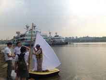 No such luck. Attaching planks was literally a painstaking work. Applying epoxy on them, we attached planks from the bottom to side deck. Despite the fact that we used both epoxy and clamps to keep the backbone still, however, we left not-so-small gaps within her planks, and in result the yacht became a bit bulkier than our original plan: it's the reason why she looked more like a duck when sailing the river, rather than a fairy queen as her name implied.