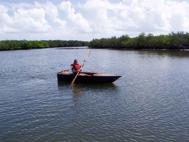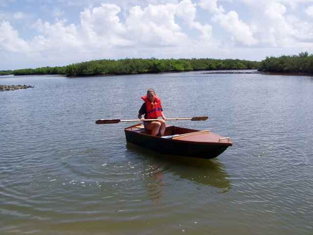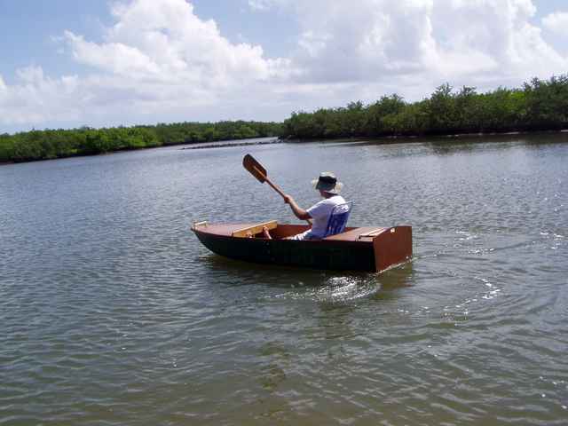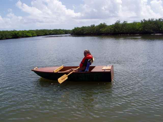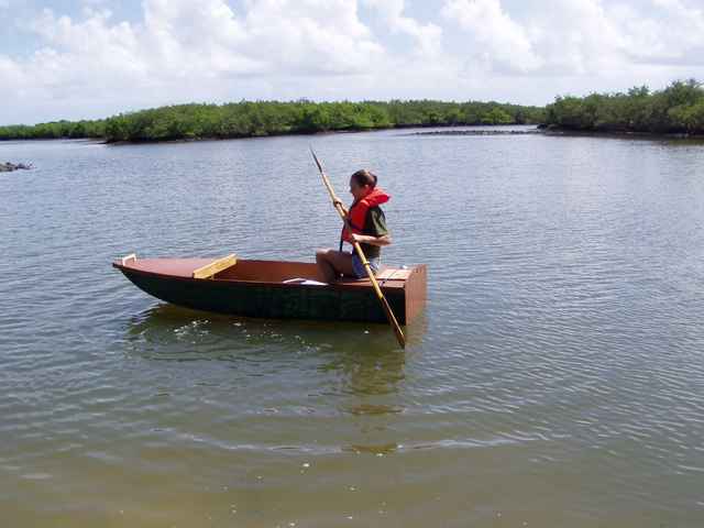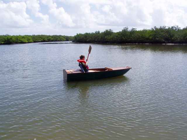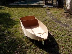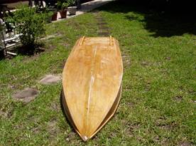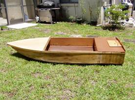 This is a short fat 'TOTO'. The cockpit is four feet long and open to the bow. The floor is 1 x 2 strips to stiffen the sides and bottom.