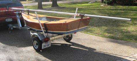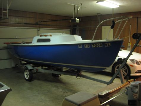She was built by VanDyne in 63, of fiberglass, might even be boat #1 of about 12 I've been told he built on the east coast, as far as I know, the only one on the west coast. She'll surf on a broad reach at over 8 kts and steer herself on a reach for hours! I bought her for $2200 over twenty years ago, fixed her up and sold her, regretfully, then a friend called me and said he thought he'd found her, bought her back, (two or three owners later for $1800 - kind of spooky. I think she must have been searching for me all that time too.