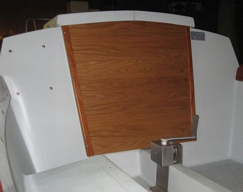 I just made a wood three-piece companionway cover to replace the old one. The old one was so big, that when removed, there was no convenient place to put it. I wanted to do this ever since I owned the boat - about 7 years now. I know you'll notice the crack in the middle of the hatch cover but I will fix that before the Texas200. I let the mast get away from my grip a couple of years ago and the hatch took the weight of the mast laying horizontally on it. Lucky that's all the damage done. Since then I've "invented" a simple device (two part device, actually) that allows me to winch it up and down and alone if I need to.