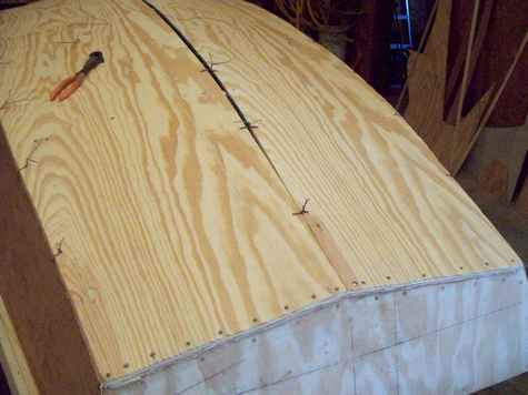 It is coming along nicely. I am going to duct tape it and roll her over in the morning and do the fillets inside. I ordered some tape, glass, and epoxy last night. I always forget to order stuff ahead of time for some reason. I have just enough tape to do one layer on the inside and it will have to set up anyway so the new order will be here in plenty of time I am sure. In the meantime I can do fiddly bits and there are plenty of them. Jackie told me I build a boat faster than Mike can caulk one. I told her that maybe but comparing one of my builds to one of Mike's builds would be like comparing a coffee table built using only a chainsaw to a fine $1000 table from Ethan Allen.