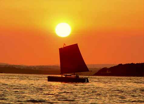 The three of us meet up on Saturday 6th July at Bramble Bush Bay. We had a meal and drinks together ashore at a beach restaurant and talked so much we almost forgot the time. We made a hasty retreat to our boats and set sail in the last of the daylight for our anchorage at Goathorn Point about an hours sail away. That's when I took the shots of us sailing into the sunset.