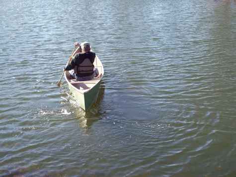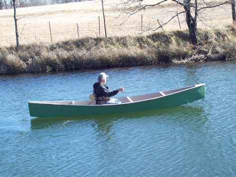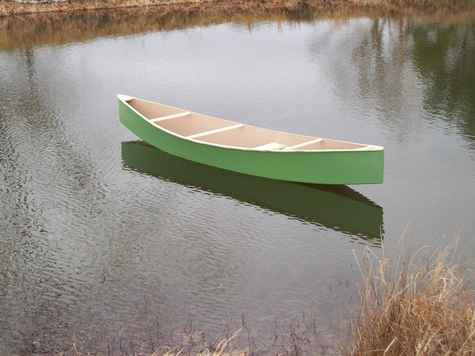 Here is my 2nd attempt at a Quick Canoe, it turned out much better than the first one (so bad I wont show it). I made a few changes from the preferred method of construction. I used inside chine logs, single seat, and no keel. I used TB III exclusively throughout the entire construction and only taped the seams. Also, I decided to forgo the inwales and she seems stiff enough without them. If it is too twitchy or flexes more than I like I can always go back and install the wales and keel. So far I have only had it in the pond as winters cold temps have a firm grip on us, but as soon as it warms up I'll be heading down the river with it.