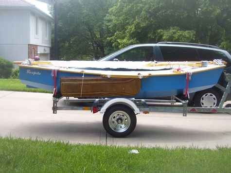 Respite, a Michalak Piccup Pram, was launched for a test row in late June. I've had her out sailing a few times since then. She is my first build and I'm very pleased with her.