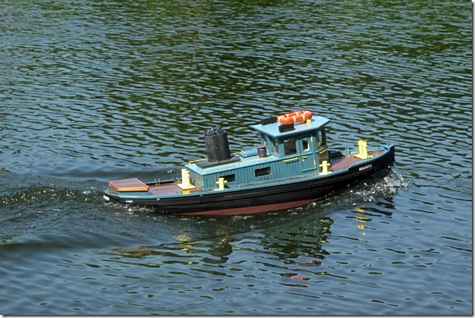 Paul launched his tug for it's sea trial and it didn't sink. He still has work to do on the interior but was more than happy with the performance. Keep in mind that the tug is about four feet long.
