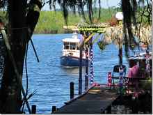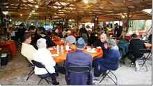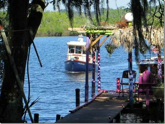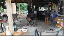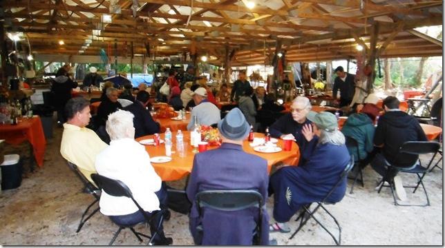Here's the same place the next say filled with wild and crazy people. It's just shocking how many people will ditch their old time family traditions and families to come out here and get abused by no telling who. It may have something to do with having to prepare only one dish, having no set up or house cleaning and no clean up at the end; you just pick up your drink, drop you plate in the trash and wander off to look at the water or listen to Stan playing rowdy songs in the hut. There wasn't a single complaint about the dust and spider webs. We estimate that there were between 50 and 60 people here this year. Being the host I had the job of hugging all the girls hello and good bye, someone has to do it don't they?