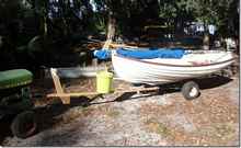 The little boat that Howard built for Red needed a trailer to move around the yard so Steve found an old rusted out garden trailer in the woods and used parts of it for this.