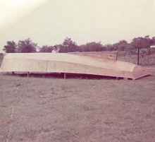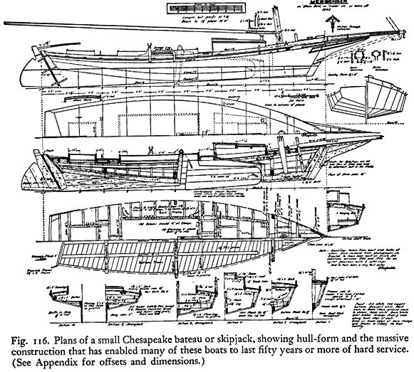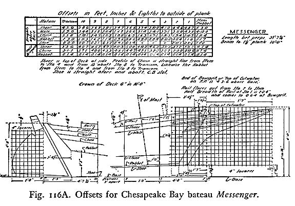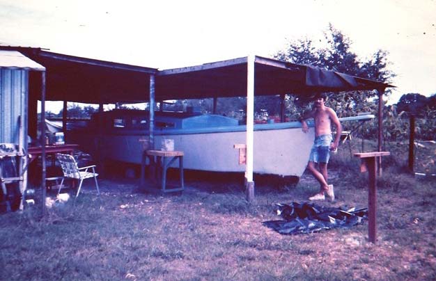 This is the story of the building of the skipjack "Messenger" as shown in Chapelle's "American Small Sailing Craft". My brother Charlie and I built it in 1974 because we wanted a large very shallow draft boat to use in Tampa Bay and along the Florida gulf coast. The only real choices for a large boat with a draft of less than two feet were a flat bottom sharpie or a shallow V bottom skipjack. Sharpies tend to be long and narrow and will pound you to death in the short sharp chop of our shallow water whereas the skipjack is wider and a little more forgiving in the chop. We used the basic drawings and table of offsets from the book to make the hull but then improvised the rest of the boat.