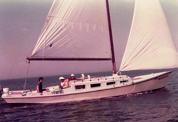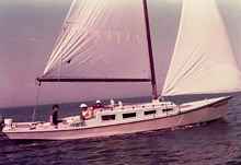 The boat "Helen Marie" (yes, I know that our current boat has the same name) was extremely fast off the wind as you'd expect with a light wide boat with a lot of sail. We didn't use the usual skipjack sail rig with a short mast and super long boom, instead she had a 40 long foot cabin top stepped mast and a 20 foot boom which gave us almost 400 sq ft in the main and this giant jib which was just about as big. We loved to race other boats off the wind. When it came to beating into the wind it was time to head for the calm water and fire up the outboard. We sailed across the bay to St Pete and were off the end of the starting line for the start of the 1975 SORC series. These were big fast ocean racers including that year the 12 meter boat Stars and Stripes. The wind was out of the north east at about 20 and with the waves kicked up we could easily surf. By the time we got down to the skyway about 10 miles away we were way ahead of the whole million dollar fleet. I bet there were some really frustrated racers on those boats. Getting back home really sucked; once we rounded up into the waves we had to drop the jib, reef down the main and head for the shelter of the protected eastern shore.