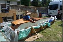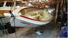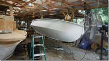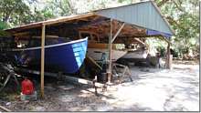 This Core Sound is a good example of what happens when anything is left alone for years. It doesn't matter if it's a car, a house or a boat, things just start to go bad if they're not used. This boat was built here at the shop back in '08 by Doc Jose to the highest standards. I've told you before about how particular he is about everything being perfect and they will be again when I'm finished. This boat will be just right for me and Helen and kids and dogs. A good example of what happens to oil paint can be seen on that narrow brown water line in the second picture. It wasn't originally brown, it was bright red like the new paint up top. It has faded from red to brown over the years out in the sun even though the boat was covered with a tarp. It will still be red in five years with this "house" paint.