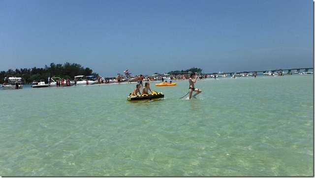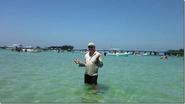 Helen and I went sailing on Memorial Day along with a million motor boaters. They weren't too bad because they were all anchored up on the flats playing in the water and not speeding all over trying to run us down. There aren't too many days they can find an excuse to get out on the water and off the trailers so they were making the most of it. I won't say anything bad about the motor boaters because the sail boaters were sorely lacking; it was a beautiful day, nice breeze and we were the only sail on the water on the whole west coast of Florida. What's wrong with this picture? Nothing, old folks cover up to keep the sun off while the young let it all hang out. You probably don't want to see me hanging out anyway.