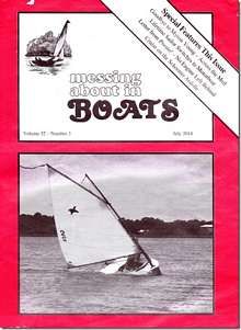 Once in a while Bob hits a home run with the cover of his MAIB's. This is one of the best pictures of a boat under sail I've ever seen. Note the perfect shape of the sail, the nice bow wave flowing down the hull and the cool calm relaxed look of the guy sailing this little beauty. Lenna Andrews took this shot at Cedar Key last May of me zipping along in a good blow. And no, I don't need no stinking reef.