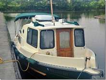Ron and Dale of the West Coast Trailer Sailors rented a little trawler on the Erie Canal and spent a week singing the canal song. They met up with a couple of other of their guys. Ron says that sailboats are great but this trawler really has it's appeal, air conditioning and all.