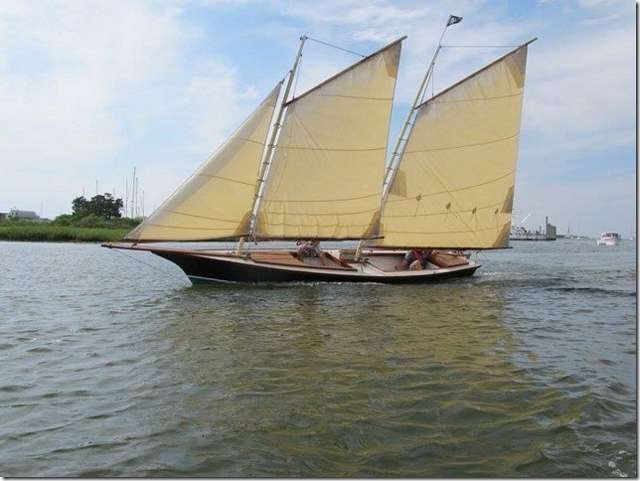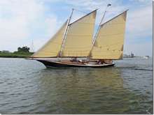 I've been known to bad mouth most of Bolger's designs as looking boxy but I'll make an exception for this schooner. It's about 30 feet long and has a flat bottom and looks great. Howard's always wanted a schooner so I thought this may be the one for him; then I heard from some of you guys. Turns out that it's really, really fast but also really tippy. Museum John says it's a 30 foot Laser and will dump your ass in a second if you don't have a crew of four or five. On to plan B.