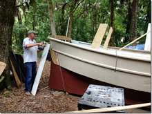 What do you do when you're a successful business man, have beautiful women falling all over you and know pretty much everything there is to know (kind of like me and Whalen); what you shouldn't do is build a boat! All of a sudden you know nothing and start to question your whole life. How can this be so hard when it looks so easy. Fland Sharp did just that and is doing a fine job of it but it's taking way longer than he thought, good thing he's not paying by the hour. This boat is a Point Comfort 18 skiff and it looks like a nice boat.