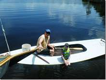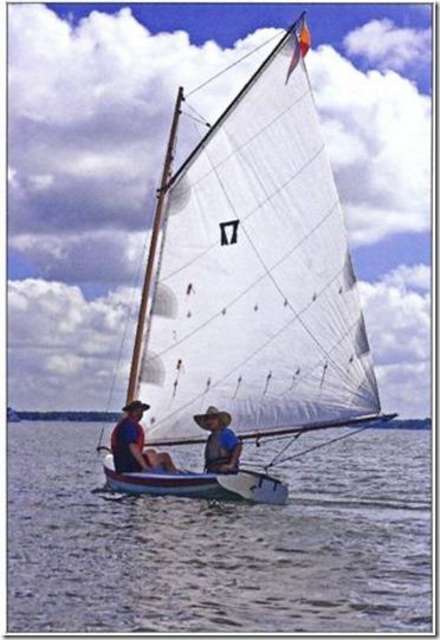 If you go to the Mid Atlantic Small Craft Festival in Oct you may see Tom Shephard there. This is him in a boat called a Tuckup that's known for it's complete lack of stability. The thing is a long skinny boat with about 4 inches of freeboard and a big sail. He offered me a ride in it once and said I couldn't get it till we were ready to go because it would sink unless we were moving. I got the impression that we'd capsize and sink if we were moving. If you see this one start to go out Barry get a video of it turning over or better yet, go out in it with him.