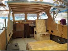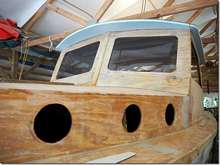 Another simple boat, if you don't count the hydraulic pumps and such; the Mega yacht's still coming along. We should be able to drag it out with about two inches to spare. We can't finish the roof till it's outside. Howard made a major effort and cleaned out the decades of built up stuff down in the cabin.
