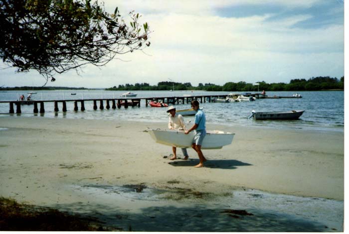 Bryce and I carrying back the dinghy tender after a sail. |