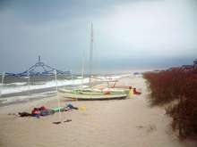 Now its been a few years and Bill and I have done the OBX130 several times, the Florida 120 once, and the Texas 200. BUT we have always done these events in "large" boats. Large is a relative term. By most peoples standards the boats we sail are very small and to take them out for 5 days at a time ridiculous. We are talking about boats from about 14' up to 18' in length. Most sailors who go out for a week will be on at least a 26' to 30' boat. Well we are upping the ante this year and a bunch of like minded boat nuts will be doing this years event in an 8' open sailing dingy. That's about the size of a coffin in case you are wondering, only a little wider. Fourteen of us will be doing this and along the way raising money for Live Strong as a Team. These boats are called Puddle Duck Racers, or PDR's for short. The 14 of us who are doing this are all very experienced sailors, and we need to be because this could be dangerous. The winds will be between 20 and 30 miles per hour. The heat index will be well in excess of 100 degrees. Sun stroke and dehydration are very real possibilities. We will be well away from civilization and help. We could get run over by very large barges if we aren't careful. The four campsites we have to make it two make up 200 miles of sailing. In an 8 foot boat that means that we will be setting sail before dawn and getting into the next camp site around sunset. The other craft that will be doing this trip will have longer water length hulls meaning that they will have much shorter days and exposure. Added to that is another interesting factor. Because we will be in last place everyday any larger boat that founders will need help and we will be the ones on the scene to help them. You can read an interesting account of just this thing happening here.