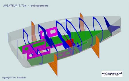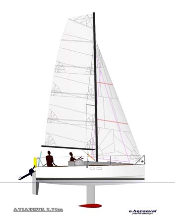 Aviateur 5,70m is a very stiff boat with a big interior volume.