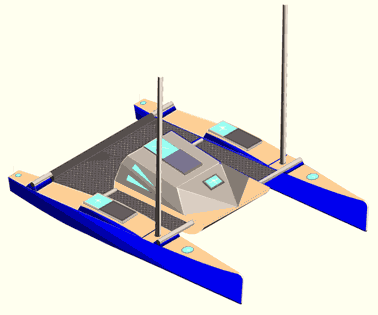 The hulls have a trapezoidal cross section. I use this shape a lot. The boats are fast, because of the