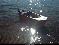 This is another photo of the boat just sitting in the water. Again, it looks aft heavy. The battery was relocated after this photo was taken. Next, it's out on the water for more testing. |